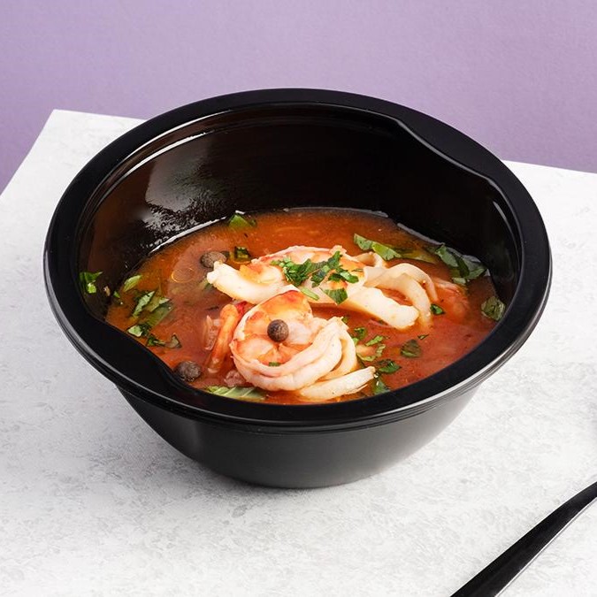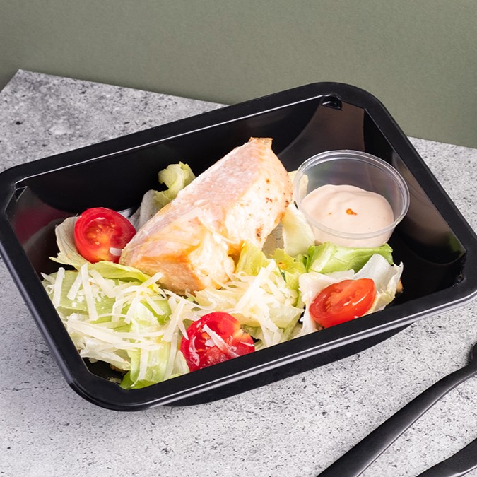 Вся еда упакована в индивидуальные одноразовые пластиковые пищевые контейнеры и запаяны пленкой, которая легко снимается. При разогреве в микроволновой печи необходимо снять или проколоть пленку и извлечь соусник, который присутствует в некоторых наших блюдах.